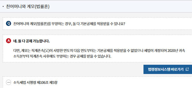 부양가족 기본공제 직접 확인해보기