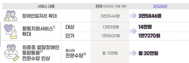 이 흐름을 고려하면 장애인 활동지원사 급여 2026 역시 인상 가능성이 높습니다.