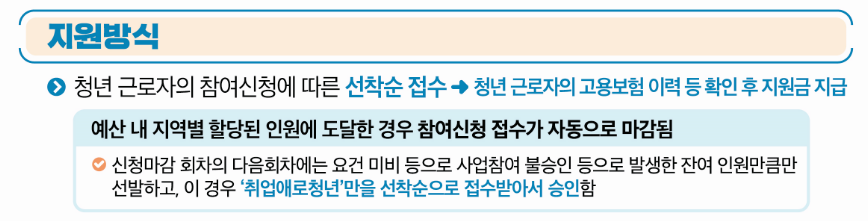 청년 근로자가 직접 참여 신청을 하면, 선착순으로 접수가 이루어지며, 고용보엄 이력 등을 확인 후 지원금이 지급됩니다.