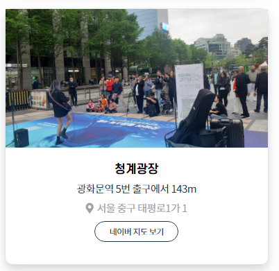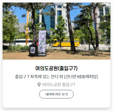 공연일정 아래에 공연장을 선택하면 각 장소 별로 서울 거리공연을 진행하는 날짜와 시간, 그리고 공연팀이 누구인지 한 눈에 알아볼 수 있습니다.