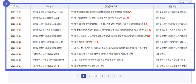 고시정보는 결정고시, 지형도면고시, 실시계획인가고시 등 중요한 정보를 제공하는 서비스예요.