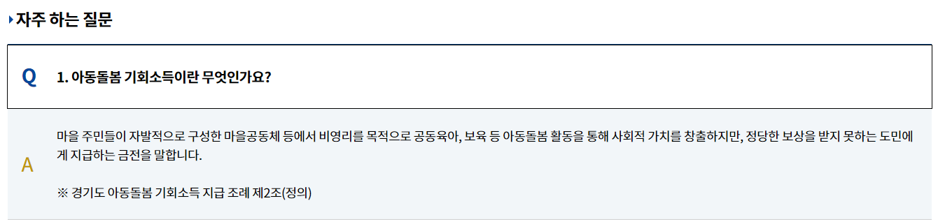 경기도에서 전국 최초로 마을 공동체에서 아동돌봄 활동을 하는 도민을 대상으로 아동돌봄 기회소득 지원금을 1인당 월 20만원 현금 지원받을 수 있습니다.