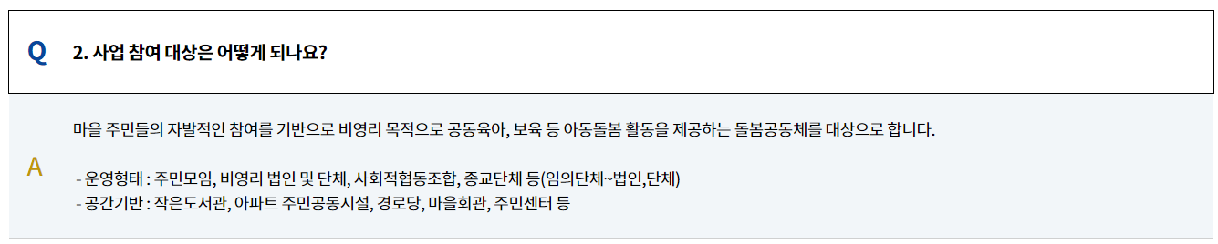 아동돌봄 사각지대의 해소를 위해서 비영리 목적으 공동유아, 보육, 돌봄 활동을 하는 5인 이상의 공동체는 아동돌봄 기회소득을 신청할 수 있습니다.