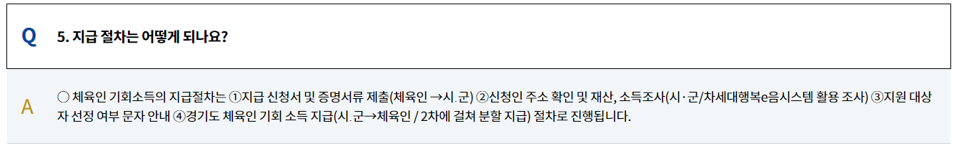 경기도에 주소지를 가자기고 있는 2005년 12월 31일 이전 출생자인 19세 이상 체육인은 기회소득 지원금을 2회에 걸쳐 연간 150만원을 지급받을 수 있습니다.
