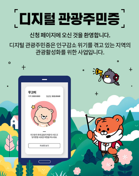 인구감소의 위기를 겪고 있는 지역의 관광을 활성화 시키기 위해서 디지털 관광주민증을 발급 받으면 다양한 혜택을 받을 수 있습니다.