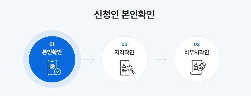 디지털 바우처 대상 여부를 확인한 후에 개인정보 제공에 동의를 하고, 디지털 바우처 전환에 동의를 하게되면 신청 본인과 자격을 확인 후에 신청을 완료할 수 있습니다.