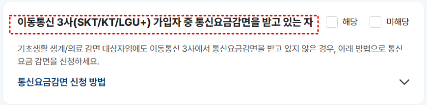 디지털 바우처를 신청 대상이 맞는지 확인하기 위해 기초생활수급자 유무, 통신요금감면 대상 유무, BC 우체국 체크가드 보유여부 등을 확인해야 합니다.
