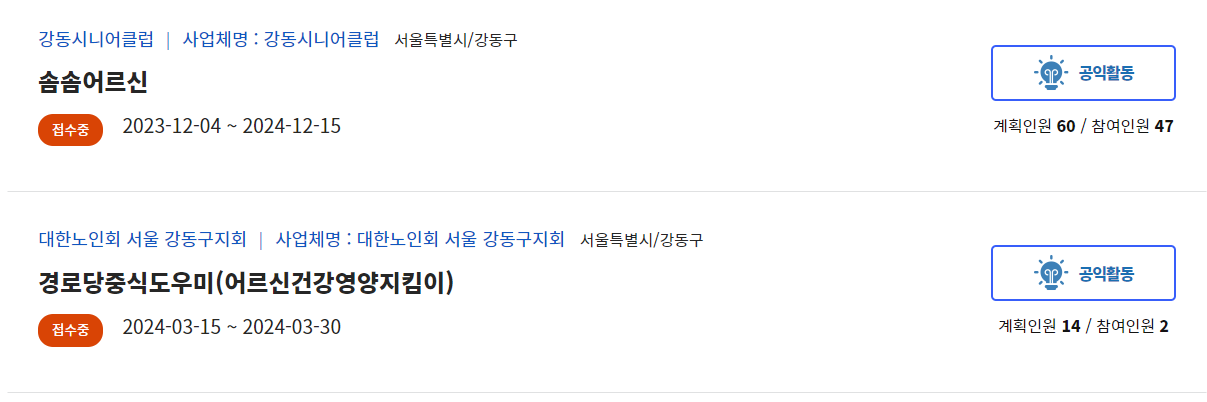 노인일자리와 같은 사회활동 지원사업 내에서는 중복 참여가 불가능해요.