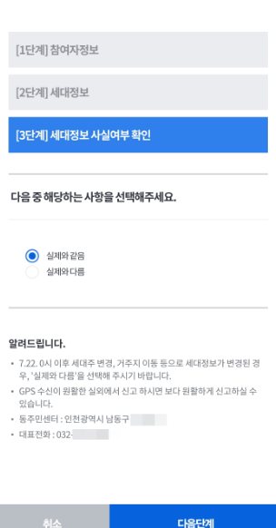 예를 들어, 7월 22일 이후에 이사를 갔거나 세대구성이 바뀌었다면, 비대면 사실조사에서 이러한 변경사항이 반영되지 않을 수 있어요. 그러므로 사실조사에 참여할 때에는 현재의 정보와 불일치할 수 있음을 이해하고 있어야 해요.