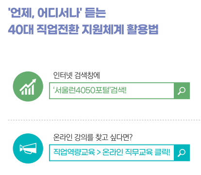 서울런4050의 온라인 콘텐츠는 직업 전환, 직업 역량 강화, 부가 수익 창출 등을 목표로 하고 있어요.