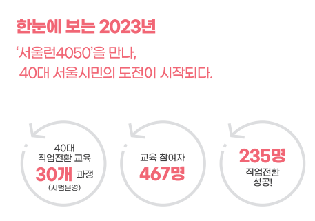 서울시는 중장년층을 위한 일자리 지원 프로젝트, 서울런4050을 통해 40대와 50대의 직업 역량 강화를 목표로 하고 있어요.