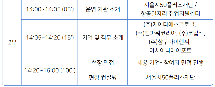 또한 대부분의 공항일자리 직무를 당일 현장면접을 진행하기 때문에 바로 채용이 될 수 있는 좋은 기회이므로 중장년 일자리 채용설명회를 놓치지 않고 참여하는 것이 좋습니다.