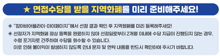 단, 반드시 경기도에 주민등록이 되어 있어야만 신청 자격이 주어집니다. 따라서 면접을 본 지역이 어디든 상관없이, 거주지가 경기도인 경우라면 신청이 가능해요.