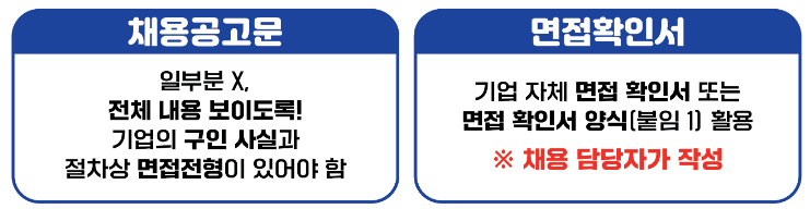 만약 채용공고문이 없다면 마감처리된 구인공고 등의 내용을 확인할 수 있는 유사 증빙서류를 준비하면 되고, 면접확인서 제출이 어렵다면 대체 서약서, 대상자 증빙서류, 면접 응시 증빙서류를 준비하면 됩니다.