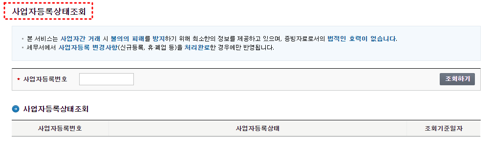거래처가 폐업 상태이거나, 세금을 누락하고 있는 경우 거래 관계에서도 문제가 발생할 수 있기 때문에, 사업자등록번호 조회를 통해 사전에 확인하고 거래를 진행하는 것이 좋아요.