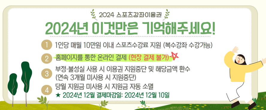 강좌에 성실히 참여함으로써 바우처의 혜택을 최대한 누릴 수 있고, 스포츠 활동의 즐거움을 더 깊이 경험할 수 있어요.
