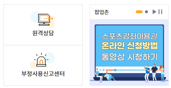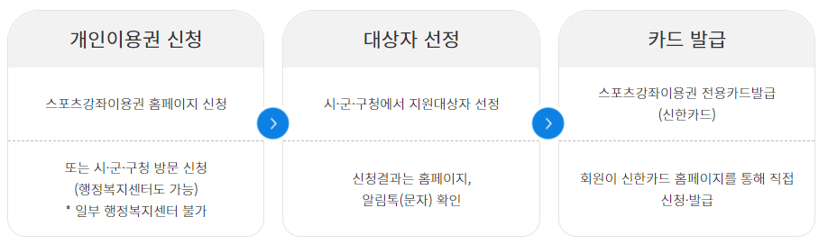신청은 시군구청이나 행정복지센터에 방문하여 오프라인으로 신청하거나, 스포츠바우처 홈페이지에 접속하여 온라인 신청하실 수 있습니다.